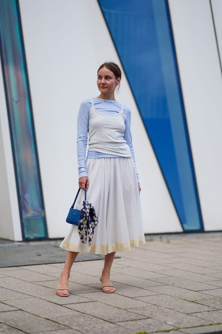 夏のワードローブの主役ともいえるロング白スカートは、どんな色とも相性が良く、見た目が涼しげなのもポイント。今すぐトライするならミディ丈の白スカートを選び、プリーツやボリューム感のあるデザインを避けたシンプルなものがオススメだ。