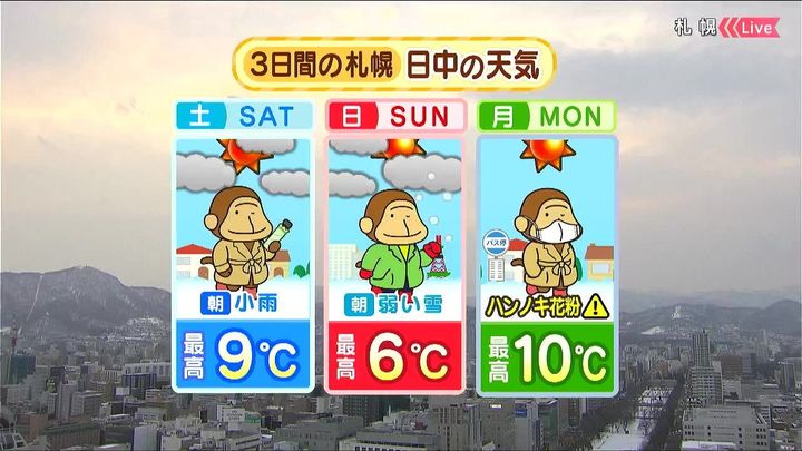 3日間の札幌です! 22日(土)~24日(月)の天気をもんすけでお伝えします!