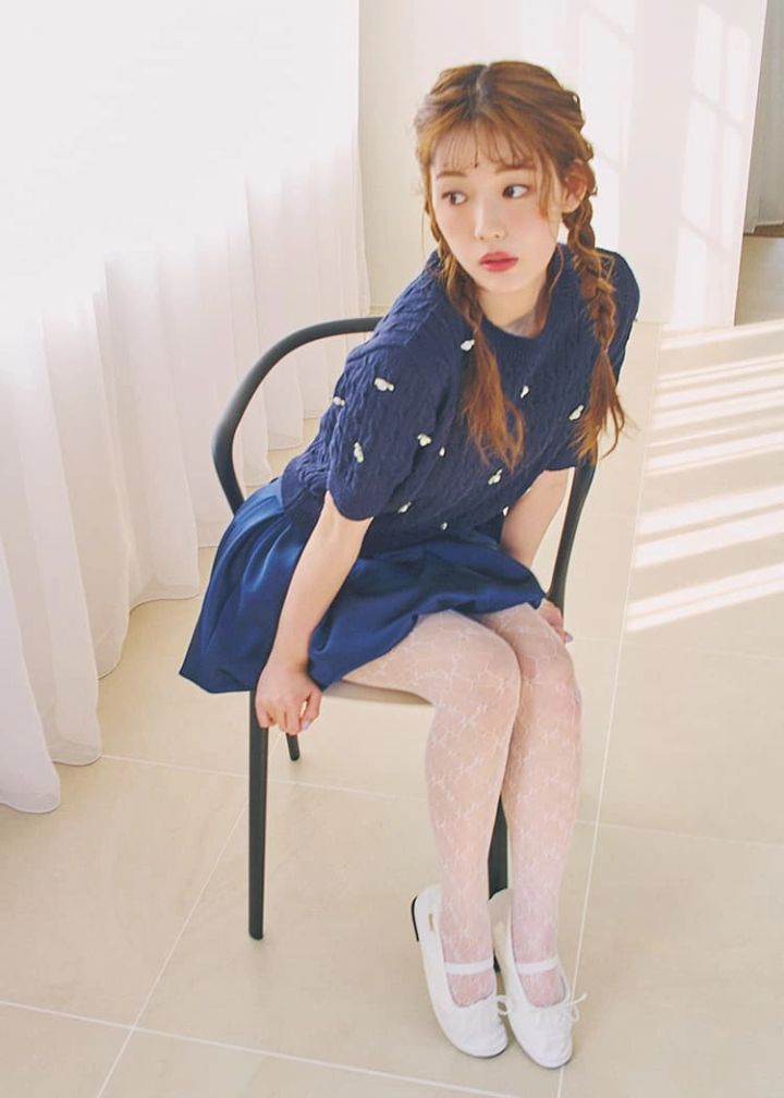 白バレエシューズ 11,000円/ロックフィッシュ ウェザーウェア(blase out)ネイビーバラモチーフつきニット 19,800円/The Girls Society ネイビーバルーンミニスカート 17,600円/eimy istoire ルミネエスト新宿店 レースタイツ 2,970円/レイ ビームス(レイ ビームス 新宿)