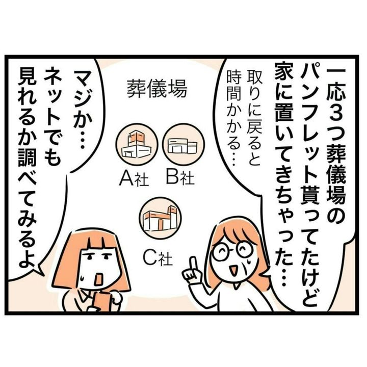 ネットに掲載されている情報を頼りに、急いで葬儀場を決めたカゲワサビさん家族。さっそく連絡をし、打ち合わせに向かいます。