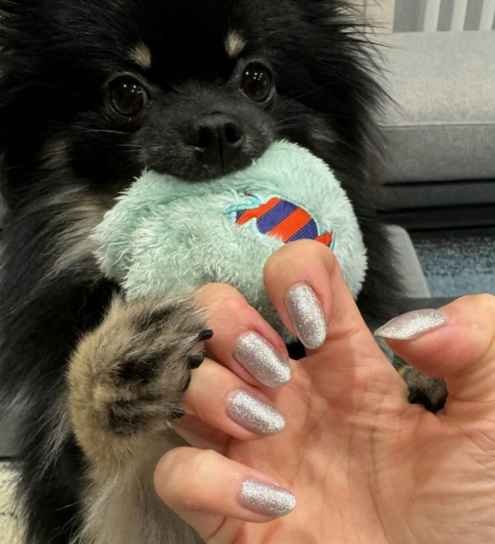 写真撮ってたら「あたちの爪もおもちゃも見て!」って来ました笑笑 X「 ちぷひま🐻🌻ポメラニアン」(https://x.com/chip1121pom/status/1898891867485544838,2025年3月14日最終閲覧)