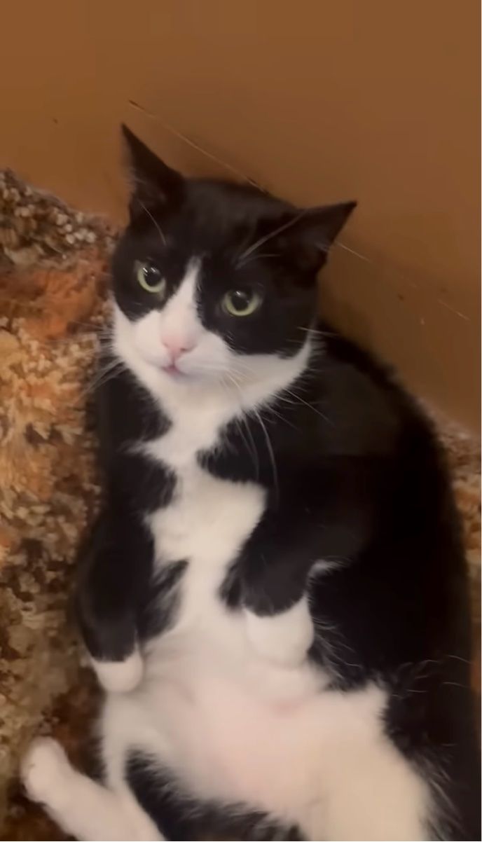 こちらの動画は、アメリカ・アイオワ州マクスウェルのとあるお宅で撮影されたもの。 愛猫の微笑ましい姿を飼い主さんが捉えました。