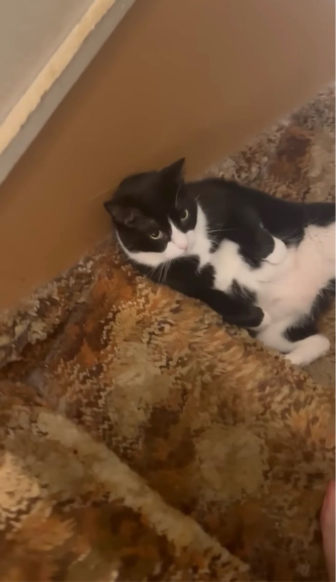3. 階段の真ん中でチルタイム!寝転がってくつろぐ姿がかわいすぎる【アメリカ・動画】