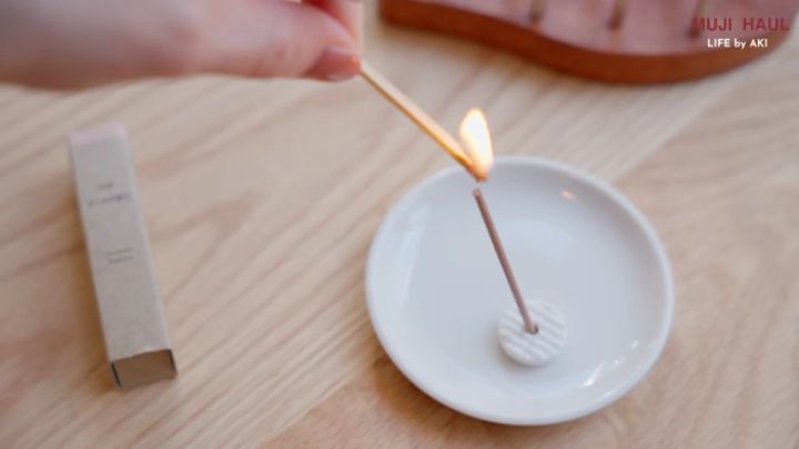 こちらのお香立ても同じく無印良品で購入したもの。無印良品のお香はコンパクトな作りなので、専用のお香立ての使用がおすすすめです。燃焼時間も約10分と短めなので、朝の支度中やお休み前のリラックスタイムなどにサッと使えるのがいいですね♪