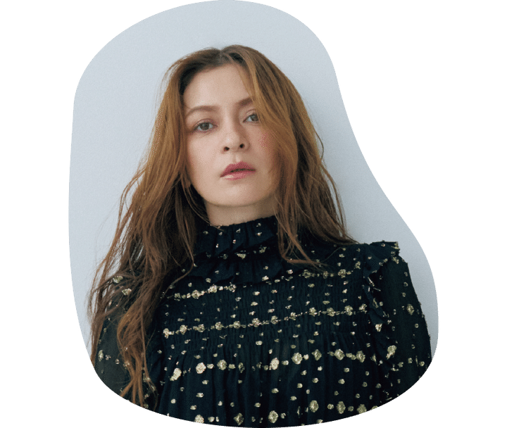 EYE:アイシャドウ右のマットカラーをアイホールと下まぶたの涙袋に塗り、左のラメカラーを黒目の上に重ねる。どちらも手持ちのブラシを使って、薄づきに仕上げて。CHEEK:指にパウダーを取り、頰の高い位置にささっと払うようにソフトタッチでのせる。LIP:リップはナチュラルに血色を足すイメージ。唇の中央に直塗りしたあと、指で左右になじませる。