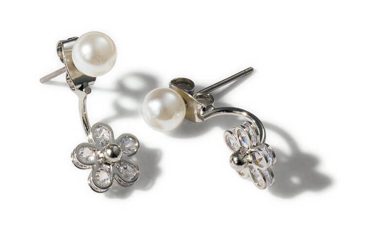 フラワーキャッチにパールをドッキング。シンプルなキャッチに付け替えれば上品な雰囲気にもなるので、気分に合わせてアレンジを。