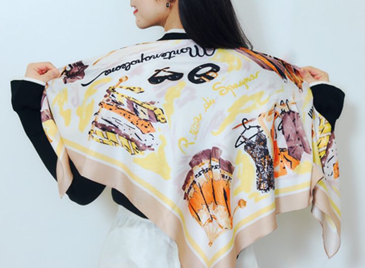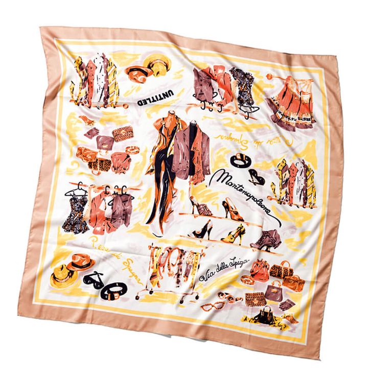 水彩タッチのスカーフのセーラー巻きでモノトーン服をエレガントに昇華♡