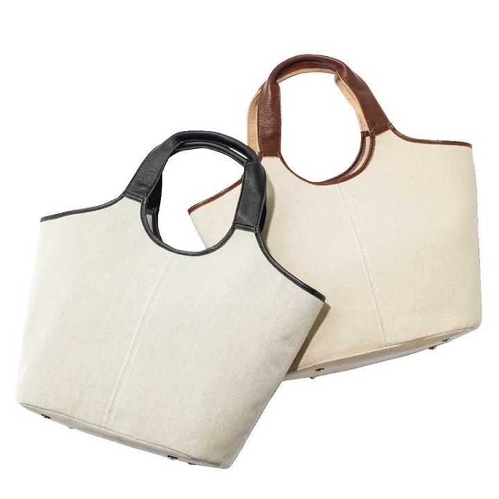 perche キャンバス×牛革コンビトートバッグ ブラウン、ブラック Price_¥13,970