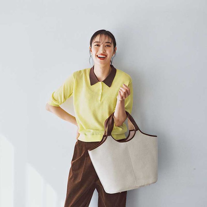 バッグ¥13,970(ペルケ)ニット¥9,900(ノーク)パンツ¥49,500(シー/エスストア)ピアス/スタイリスト私物