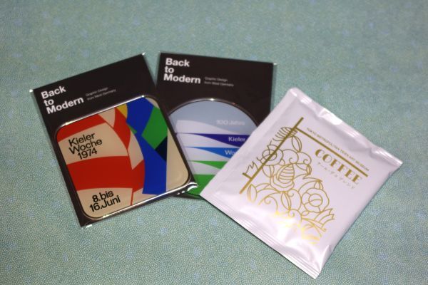 ミュージアムショップではアクリルコースター「キール ウィーク」の1974と100周年キールウィーク1982(各770円)、庭園美術館オリジナルドリップパックコーヒー(450円)を購入。 コースターは今見てもモダンで日常使いに丁度良い色味とデザインです。