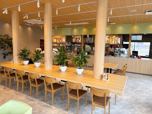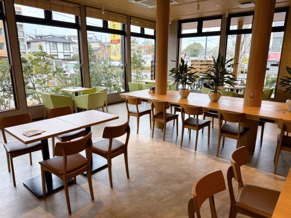 彩光の良い店内は広々として、木の温もりを感じるナチュラルなインテリアで統一されています。観葉植物もあり、癒される空間です。
