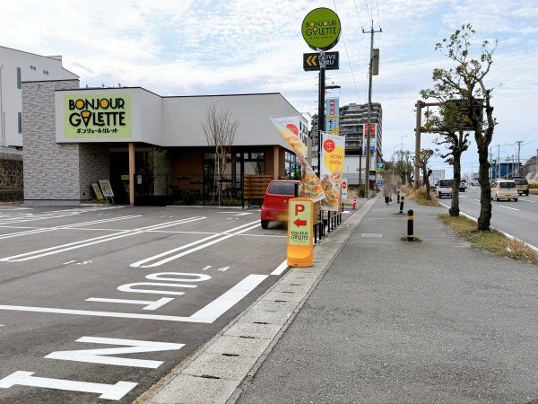福岡市東区若宮にある「ボンジュールガレット」。国道3号線博多バイパス沿い、西鉄貝塚線千早駅・名島駅よりともに車で約6分ほどの場所にあります。