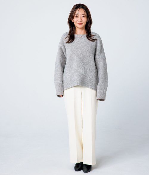 ベルト[141㎝]¥11,000(ハァウ/ウィム ガゼット 玉川髙島屋S・C店)ジャケット¥37,400(リエス)ニット¥15,400(ルーニィ)パンツ¥28,600(LE PHIL/LE PHIL NEWoMan新宿店)バッグ¥50,600(ヴァジック/ヴァジックジャパン)メガネ¥66,000(アイヴァン 7285/アイヴァン 7285 トウキョウ)ピアス¥7,920〈ピルグリム〉(ともにZUTTOHOLIC)ネックレス¥69,300(リューク)