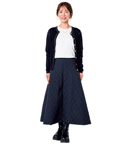 ベルト[95㎝]¥11,000(レフィエ/フラッパーズ)ジレ¥23,100ニット¥12,100(ともにMIESROHE/MIESROHE ルミネ新宿1店)スカート¥41,800(ソブ/フィルム)バッグ¥12,650(アルテミス by ダイアナ/アルテミス by ダイアナ アーバンドックららぽーと豊洲店)ブーツ¥29,700(ダイアナ/ダイアナ 銀座本店)ピアス¥8,470(エティカ/ZUTTOHOLIC)