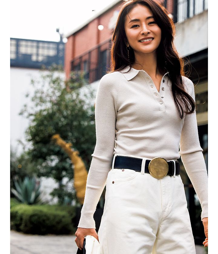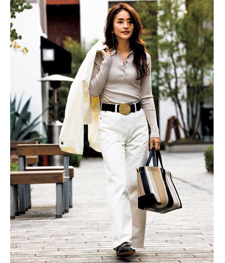 ベルトマークで余裕を感じさせる佇まい。コーデに締まりを与え、嫌味なく品を纏えるベルトは、トレンドをおさえた格上スタイルに進化。