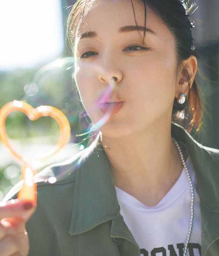 デニムパンツ¥42,900(ebure/LITTLE LEAGUE INC.)ジャケット¥129,800(ハルノブムラタ/THE WALL SHOWROOM)タンクトップ¥8,800(プロタゴニスタ/アンタイトル)バッグ¥39,600(メアリ オル ターナ/AL Design Inc.)パンプス¥17,500(CHARLES & KEITH/CHARLES & KEITH JAPAN)ピアス¥3,850〈ヘンカ〉リング¥17,600〈cujacu〉(ともにロードス)チェーンネックレス¥20,900(ローラ ロンバルディ/八木通商)ネックレス¥99,000ネックレスチャーム¥77,000(ともにウノアエレ)バングル¥517,000(モニス/フォーティーン ショールーム)
