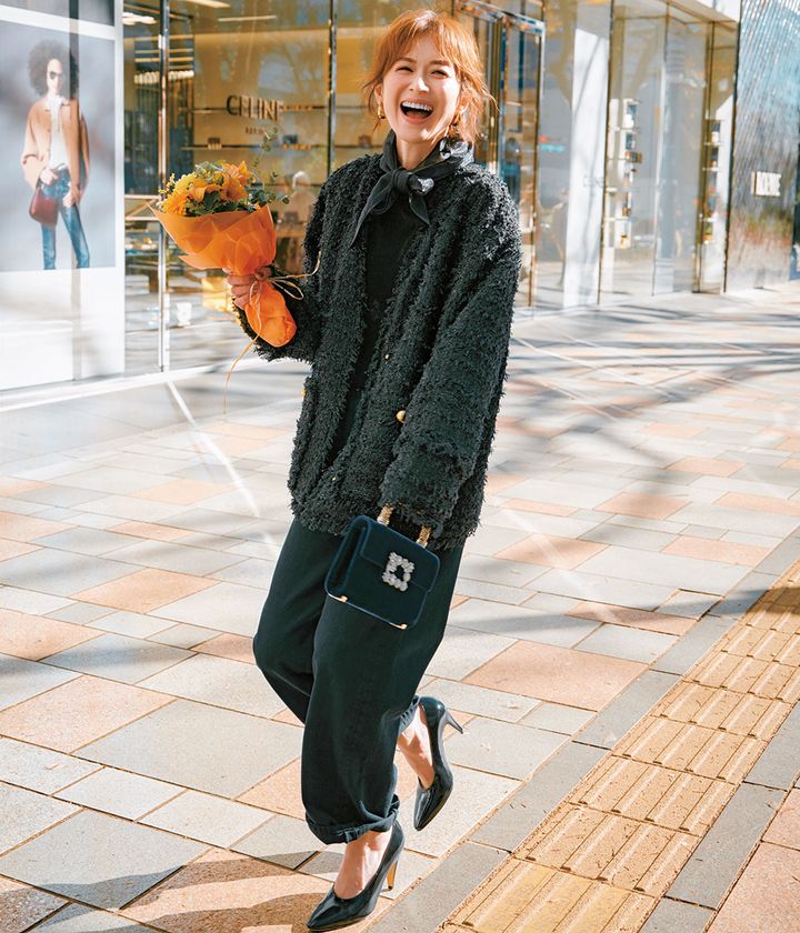 パンツ[3月中旬発売予定]¥176,000ジャケット¥173,800(ともにマディソンブルー)カットソー¥19,800(スタンブリー/ヒューエルミュージアム)バッグ¥99,000(メゾンヴァジック/ヴァジックジャパン)靴¥74,800(ペリーコ/アマン)ピアス¥13,200(ダブルスタンダードクロージング/フィルム)リング¥38,500(ブランイリス/ブランイリス トーキョー)インナー(スタイリスト私物)
