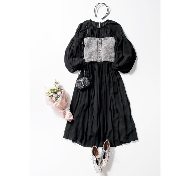 使いやすいけれど着回しの幅に悩むワンピこそ、ビスチェ投入の絶好の機会。