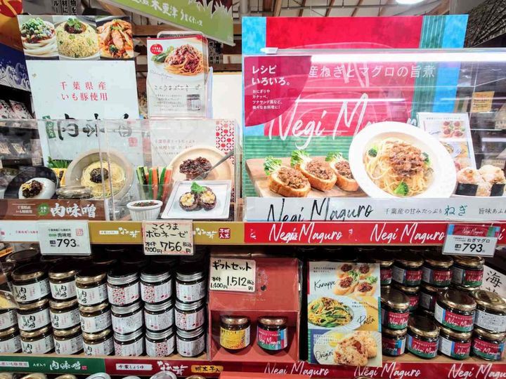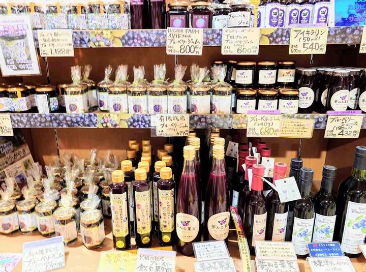 千葉県はブルーベリーも名産品で、ソース、ジャム、ゼリー、マフィン、果実酒などさまざまな商品が並んでいます。お土産にもってこいです。