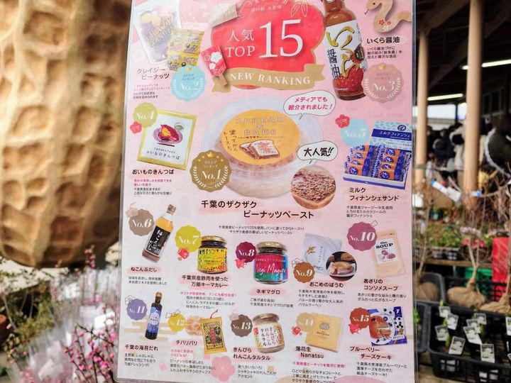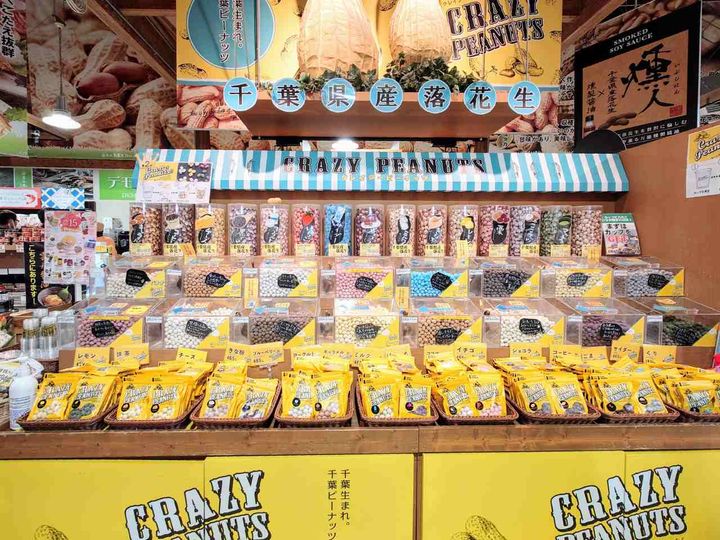 地元契約農家さんが作る新鮮な野菜や果物、地元産のピーナッツやブルーベリーの商品、千葉の行列店のグルメなど名産品2,000点以上を販売しています。不定期でイベントを開催し、ピーナッツキャッチャーのクレーンゲームも楽しめる体験型テーマパークです。