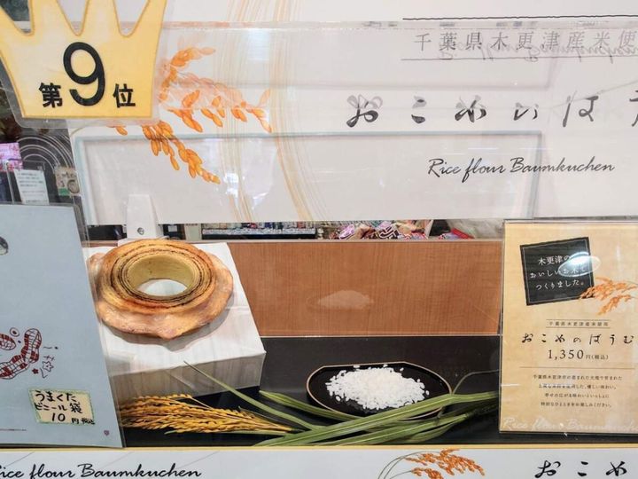 新商品「おこめのばうむ」(税込1,350円)。木更津産米粉を使ってバターが香るモッチリ系のバウムクーヘンです。