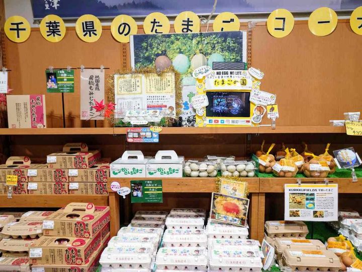豊かな千葉の自然の中で育った鶏から生まれた卵のコーナーも大充実! 贈答品にも喜ばれているそう。