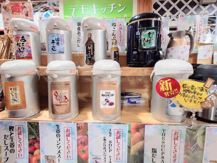 出汁、お菓子、ジャムなど、多くの商品が“試飲試食可能”なのも魅力。「試飲お声がけください」と書かれている商品に関してはスタッフさんにお願いして試せます。
