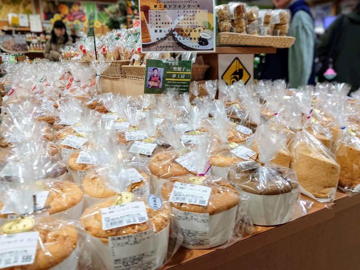 地元のお菓子工房の方々が作る焼き菓子も豊富に並んでいます。フワフワのシフォンケーキ、スコーン、ラスクなど、お店の方も「おいしいよ」とファンになるほどのお墨付き!