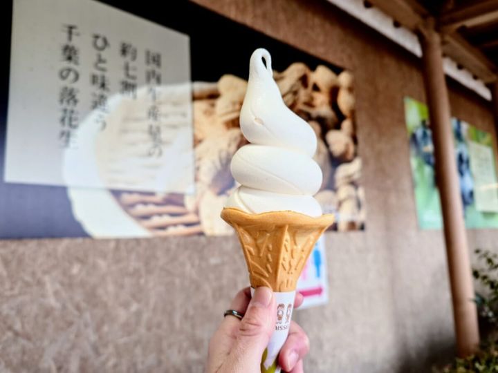 ピーナッツとブルーベリーのフレッシュで贅沢な味わいが大好評! お買い物後の締めくくりに“道の駅でソフトクリーム”は定番コースですね!