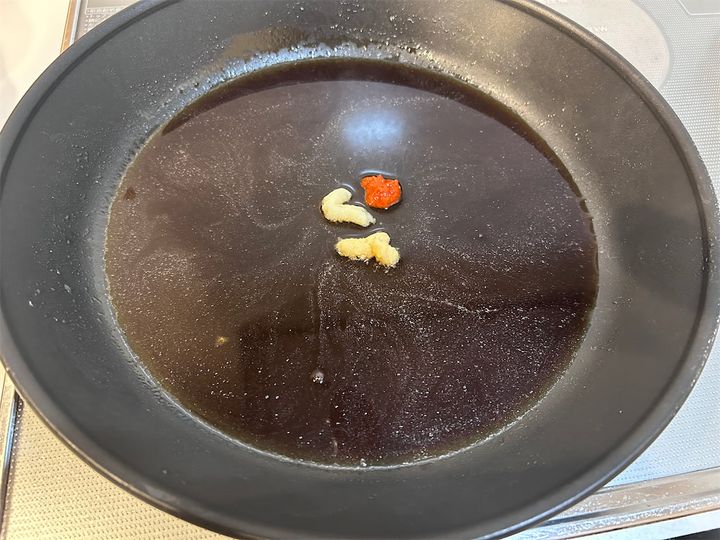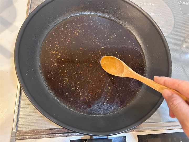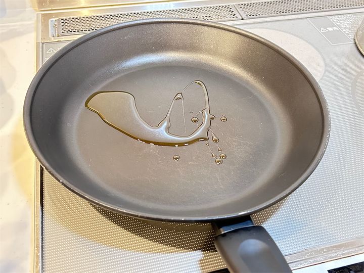 先ほど2で新玉ねぎを焼いたフライパンをそのまま使って大丈夫です。
