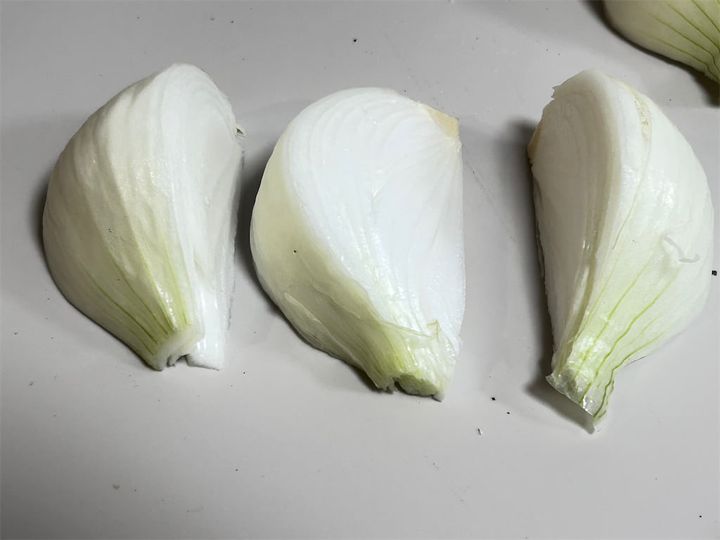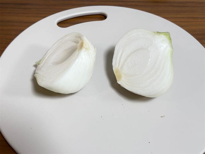 今回のレシピは、ざっくりと切った新玉ねぎをドーンと漬けていくので、芯の部分は残しておきましょう。