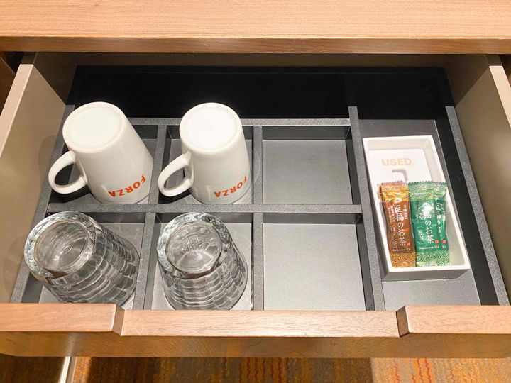 マグカップは、オレンジ色の“FORZA”のロゴがかわいいです。冷蔵庫は冷えた状態になっていました!
