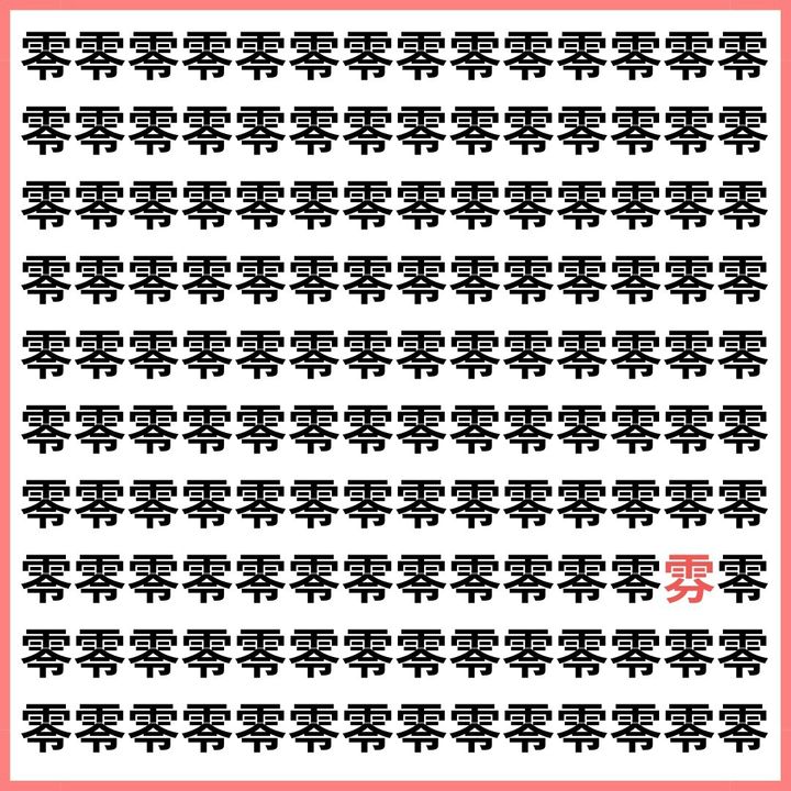 たくさんの「零」の中に、1文字だけ違う漢字が混ざっています。