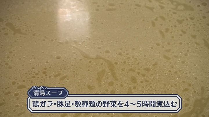 スープは鶏ガラ、豚足、数種類の野菜を4〜5時間煮込んで作る清湯(チンタン)スープ。