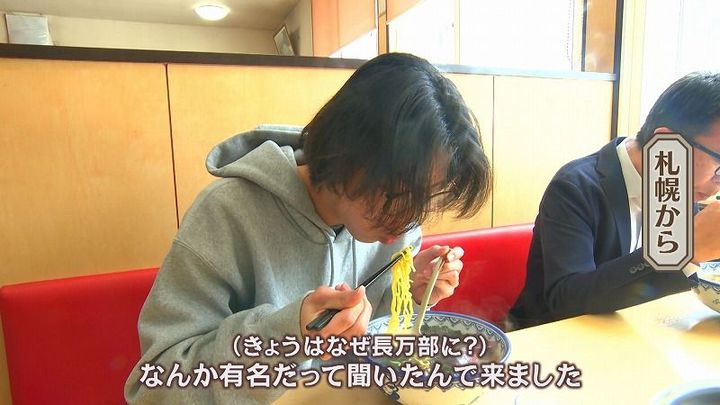 番組スタッフ:「きょうはなぜ長万部に?」札幌から:「有名だって聞いたので来ました。」