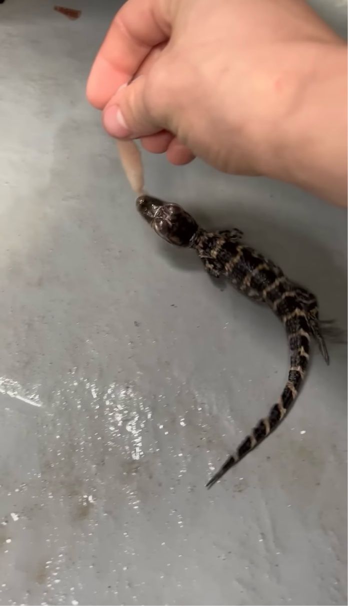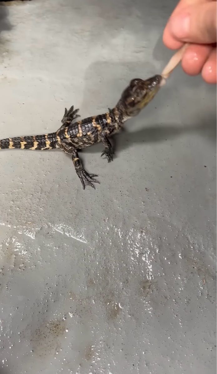 ワニの赤ちゃんが必殺技を披露!エサにガブリと噛みついてコロコロ回転!!【アメリカ・動画】