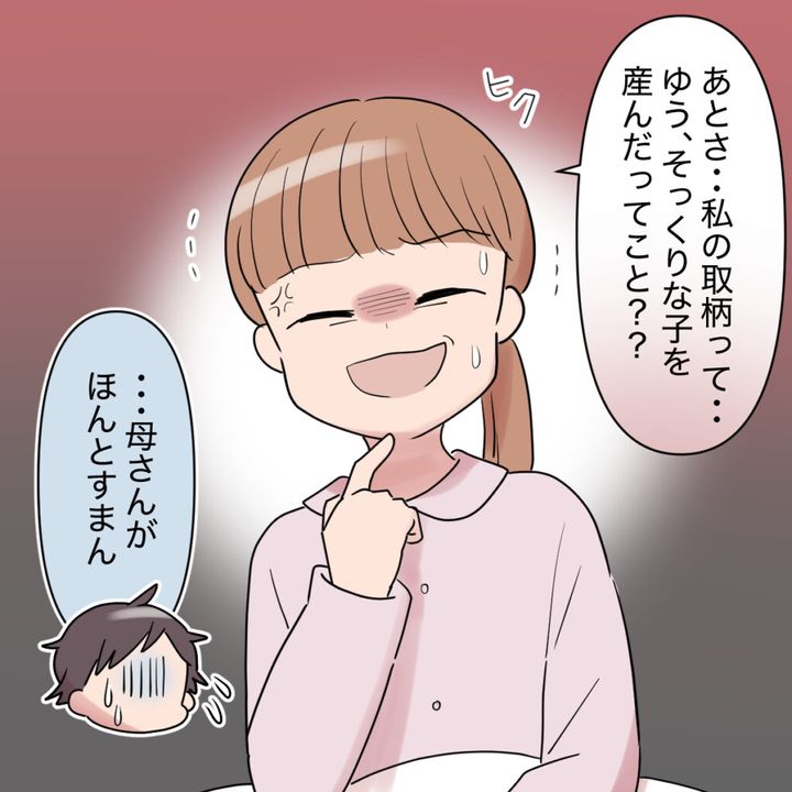 マキさんはイライラを我慢しながら「私の取り柄って・・・ゆう、そっくりな子を産んだってこと?」とゆうさんに言うと「母さんがほんとすまん」と青ざめました。