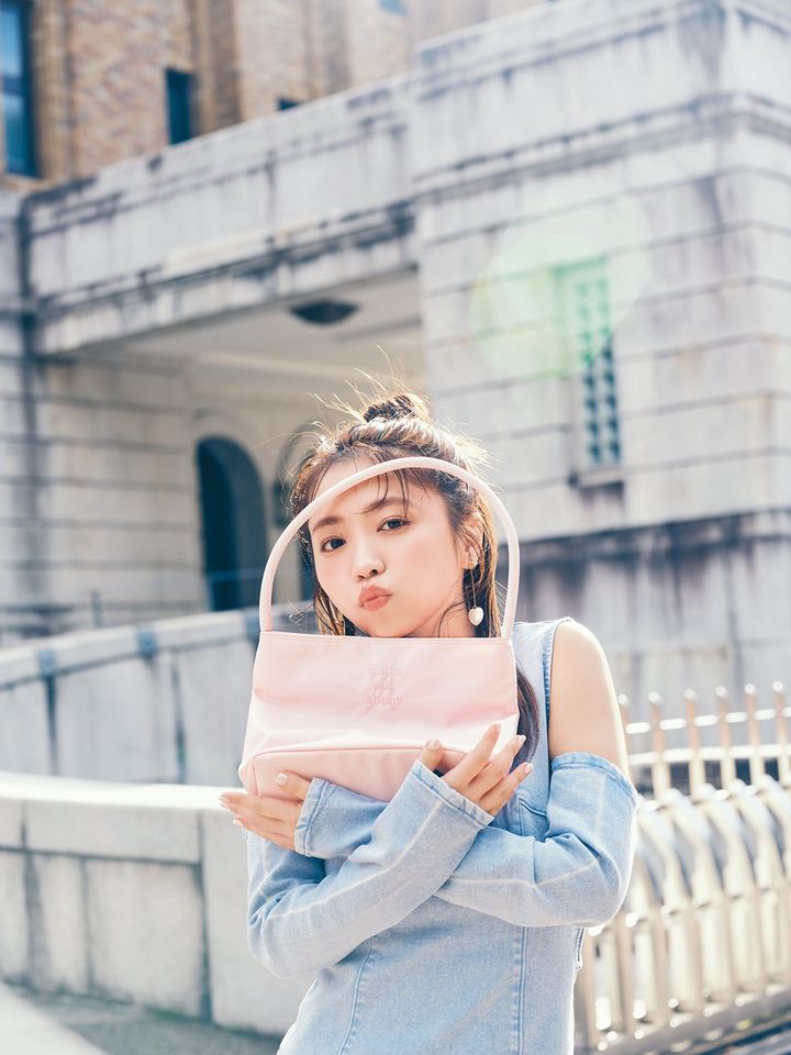 大原優乃。ar3・4月号より ワンピース¥23,100/ハニー ミー ハニー イヤリング¥3,850/マチルダローズ(ハチマルゴショールーム) バッグ¥8,150/ムクアンドエポニー(ハナ)ミュール¥8,910/ランダ