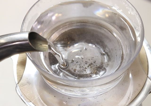 そのまま放っておくと、シャワードリップの底にある穴からぽたぽたとお湯が落ちてきます!今回は約200ccのお湯を注ぎましたが、ものの5分ほどで抽出できましたよ♪