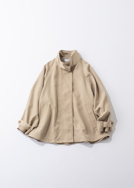 端境期に1枚あると重宝するライトアウター。微光沢感のある上質な素材に、ウエストを絞れるショート丈のデザインは、きれいめ派にもおすすめできます。ワイドパンツやフレアースカートとも好相性。裏地も付いていないので梅雨までロングシーズン着用可能です。