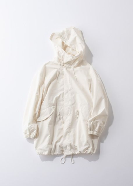張り感のある薄くて軽いナイロン混素材。撥水加工も施されているので、天候を気にせず普段使いにおすすめで、シワにもなりにくいです。春を感じるホワイトカラーは着回し万能、オーバーサイズが旬のムードに導きます。Tシャツの上からバサッと羽織ってもサマ見えしますよ。