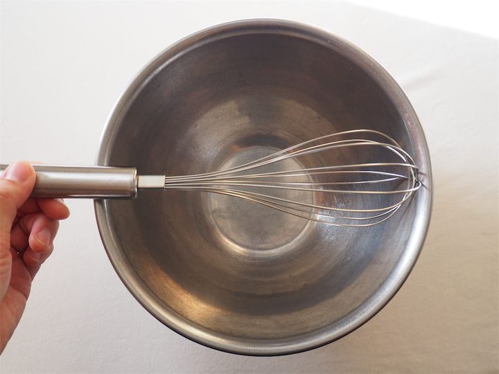 ①少し大きめのボウル&ボウルの直径よりも少しだけ長いホイッパーを使う。