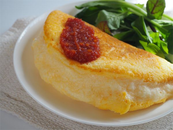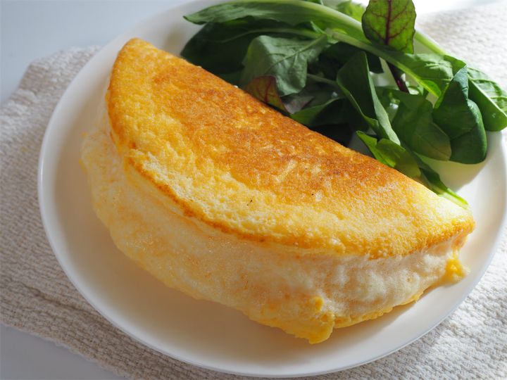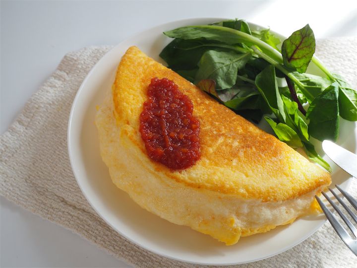 ナイフを入れるとふんわりとした切り心地に。エアリーでふわふわのオムレツは、食感の楽しさはもちろん、カフェで朝ごはんやランチを食べているような豊かな気持ちになります。コツを押さえて撹拌してみると、いとも簡単に卵白を立てることができました。メレンゲを立てる=ハンドミキサーを使用すると思って生きてきたので、もはやこれは革命。ミキサーを出したり片付けたりするのは少し手間がかかるので、うれしいアップデートです。