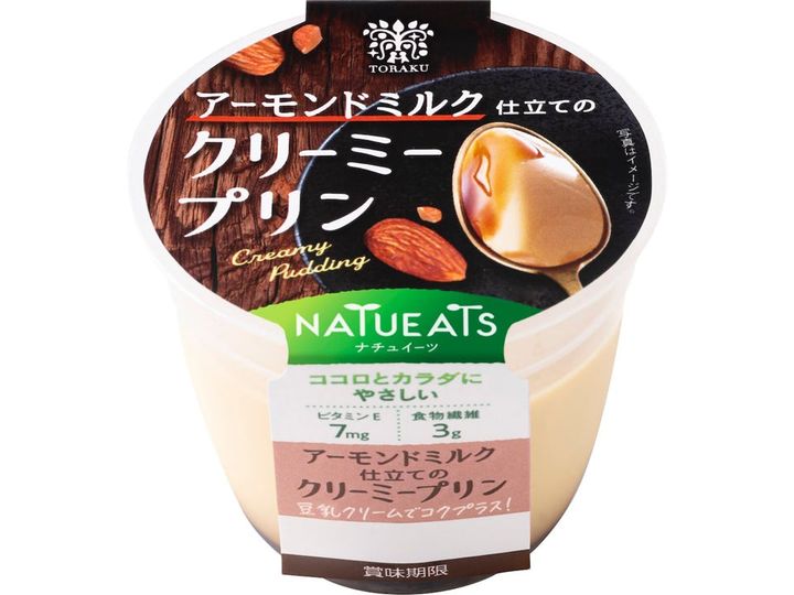 第1弾商品は、アーモンドミルクを贅沢に使用した「アーモンドミルク仕立てのクリーミープリン」。