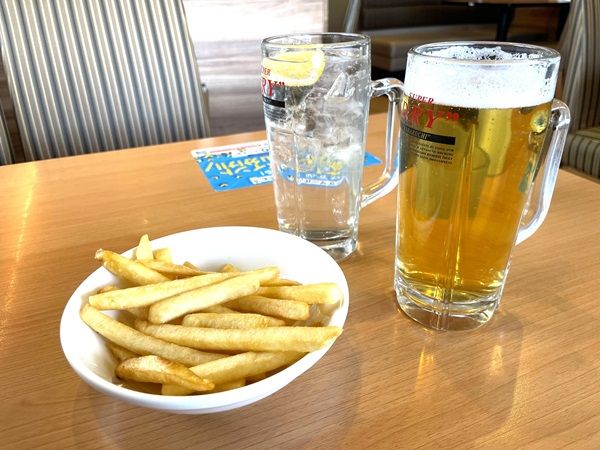 大ジョッキのビールとレモンサワー、ポテトで1000円以下