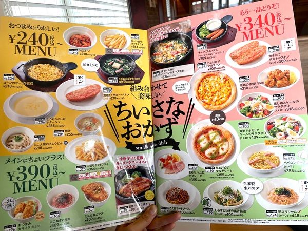 まずガストのグランドメニューを見てみると、「アルコール 小さなおかず」という項目があります。ちょっと飲みたいときにピッタリな「ちいさなおかず」シリーズでは、ハーフサイズのパスタやおつまみにちょうどいい「コーンのオーブン焼き」(290円)、「若鶏スパイス焼き」(440円)、「ちょいピザマルゲリータ」(390円)、「キムチ」(240円)などお手頃価格で楽しめるメニューがズラリ。