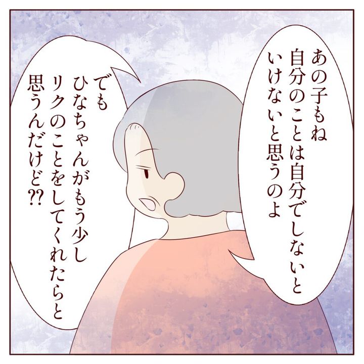 「あの子もね。自分のことは自分でしないといけないと思うのよ。でも、ヒナちゃんがもう少しリクのことをしてくれたらと思うんだけど??」