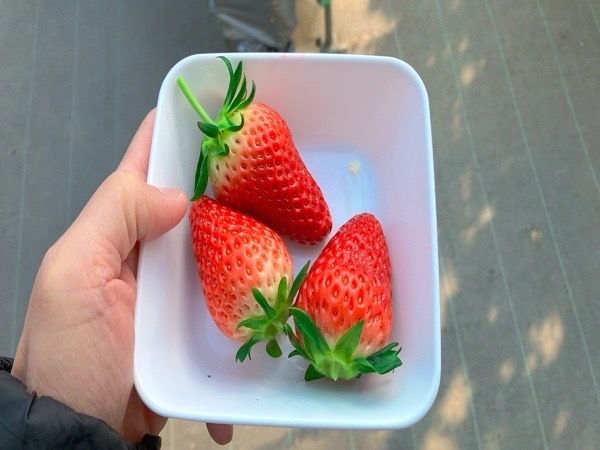 商品によって決められた数だけ大きな苺を狩って、入れた容器を店員さんにお渡しします