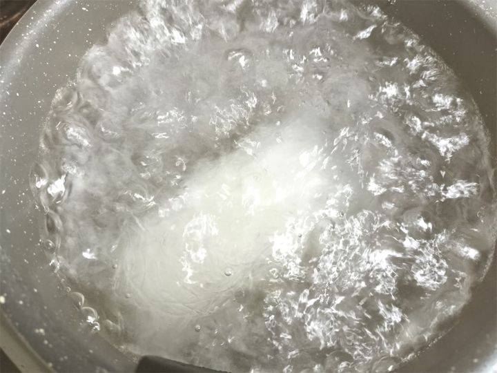 1. 春雨をたっぷりの湯で3~4分茹でて、ザルに上げて湯切りしておきます。