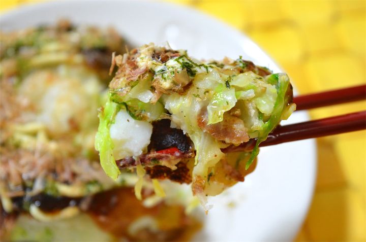 バターのコクがほかの具材と絶妙にマッチして、豚肉の旨味も加わって贅沢なお好み焼きのお味がする(笑)。